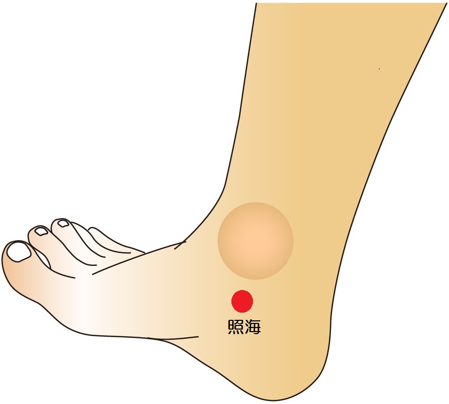 座って楽な姿勢でツボをとろうとすると、足の指先が前にたおれることが多いので「くるぶしの真下」に照海はなりません。