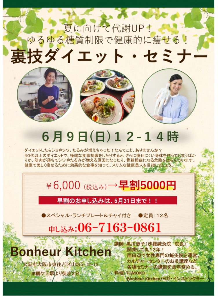 お申込み:06-7163-0861( Bonheur Kitchen )