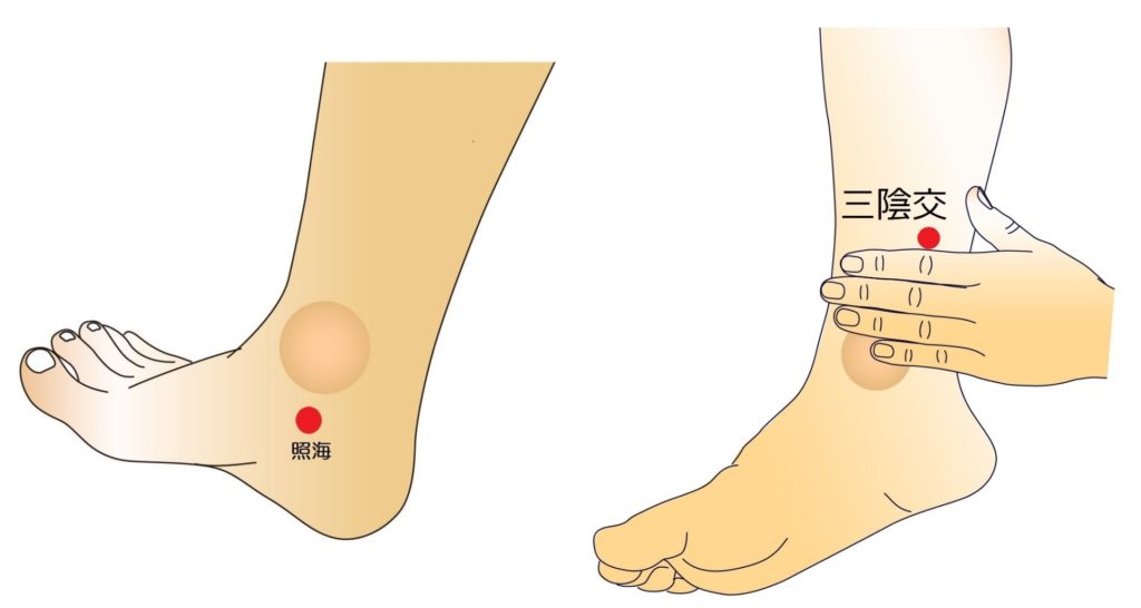冷えや子宮の血流をよくしてくれるツボ「三陰交」や、腎臓や生殖器を養ってくれる「照海」にセルフ灸するもGood!