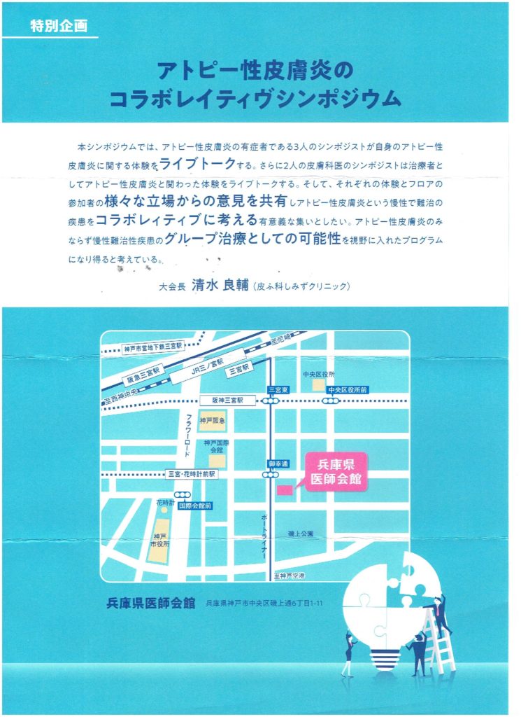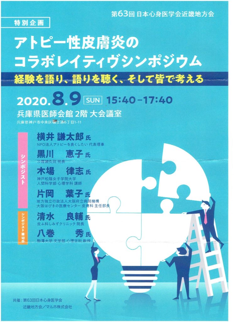 コロナウィルスの影響により開催が延期されていた第63回日本心身医学会近畿地方会の特別企画「アトピー性皮膚炎のコラボレイティブシンポジウム」が、8月9日(日)に開催されることになりました。