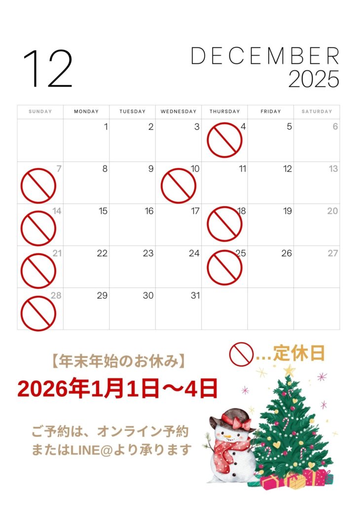 12月の鍼療日のご案内をさせていただきます。